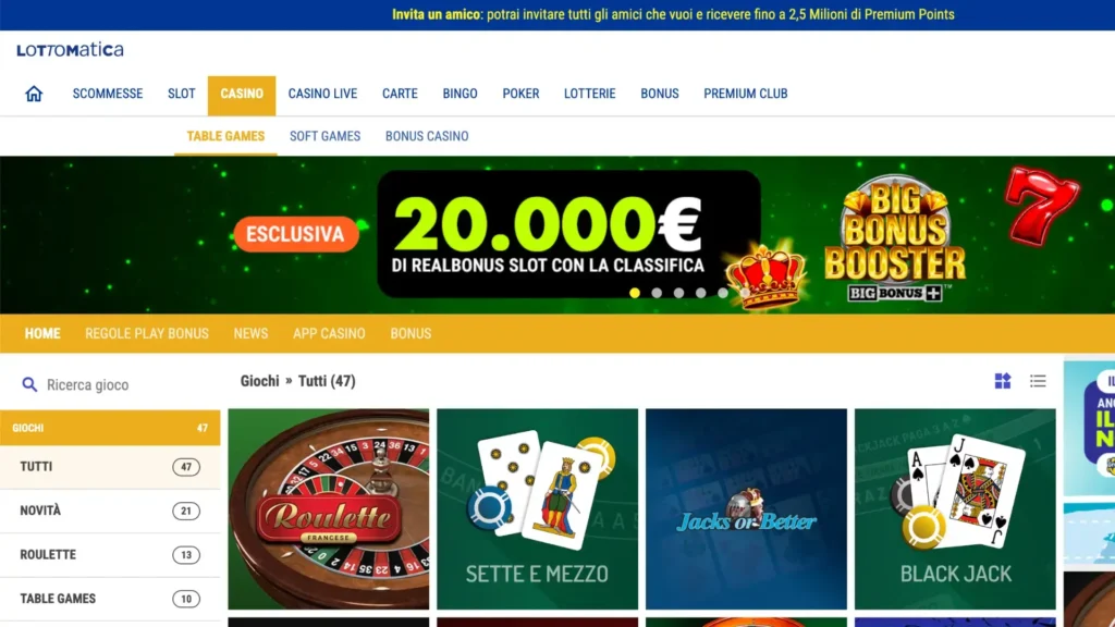Lottomatica Casino is a leading Italian online casino platform licensed and regulated by the Agenzia delle Dogane e dei Monopoli (ADM), offering a wide range of gaming options including slots, table games (blackjack, roulette, baccarat), and live dealer games powered by Evolution Gaming.